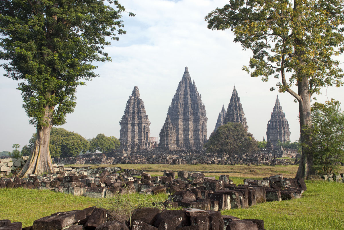 Prambanan (right) consists of Prambanan Temple (also called Loro Jonggrang), Sewu Temple, Bubrah Temple and Lumbung Temple. The complex comprises 240 temples that form the Prambanan Archaeological Park. They were built during Sailendra’s powerful dynasty in Java in the 8th century AD.